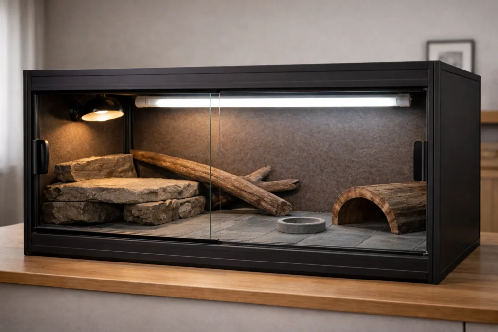 Many enclosures look similar on paper but behave very differently once they are set up. Limited floor space, poor access, or incompatible lighting placement can make it difficult to maintain stable temperature zones or position UVB correctly. These limitations often don’t become obvious until after the enclosure is in use, which is why many setups end up being replaced sooner than expected.