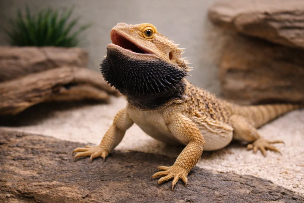 A Black Bearded Dragon isn’t a separate species but a variation of the common bearded dragon (Pogona vitticeps). These reptiles can darken their skin dramatically due to mood, temperature regulation, or stress. When fully dark, they appear almost entirely black, giving them their distinctive name.